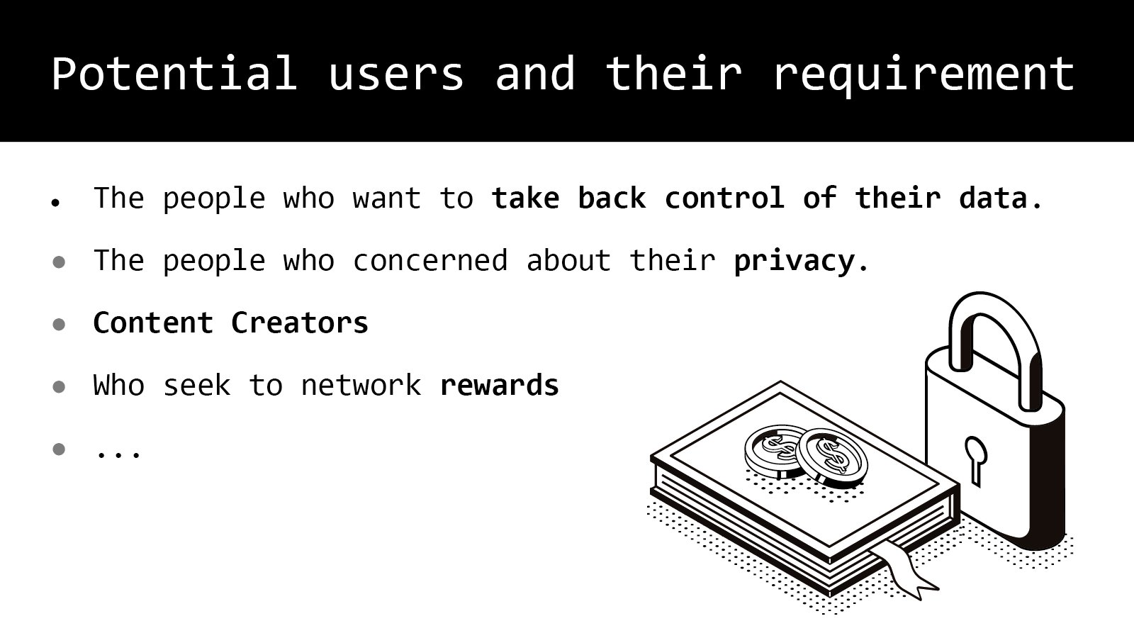 我现在列出几个特征, 就是说:想拿回他们数据控制权的用户、在意隐私的用户、和内容的创建者。