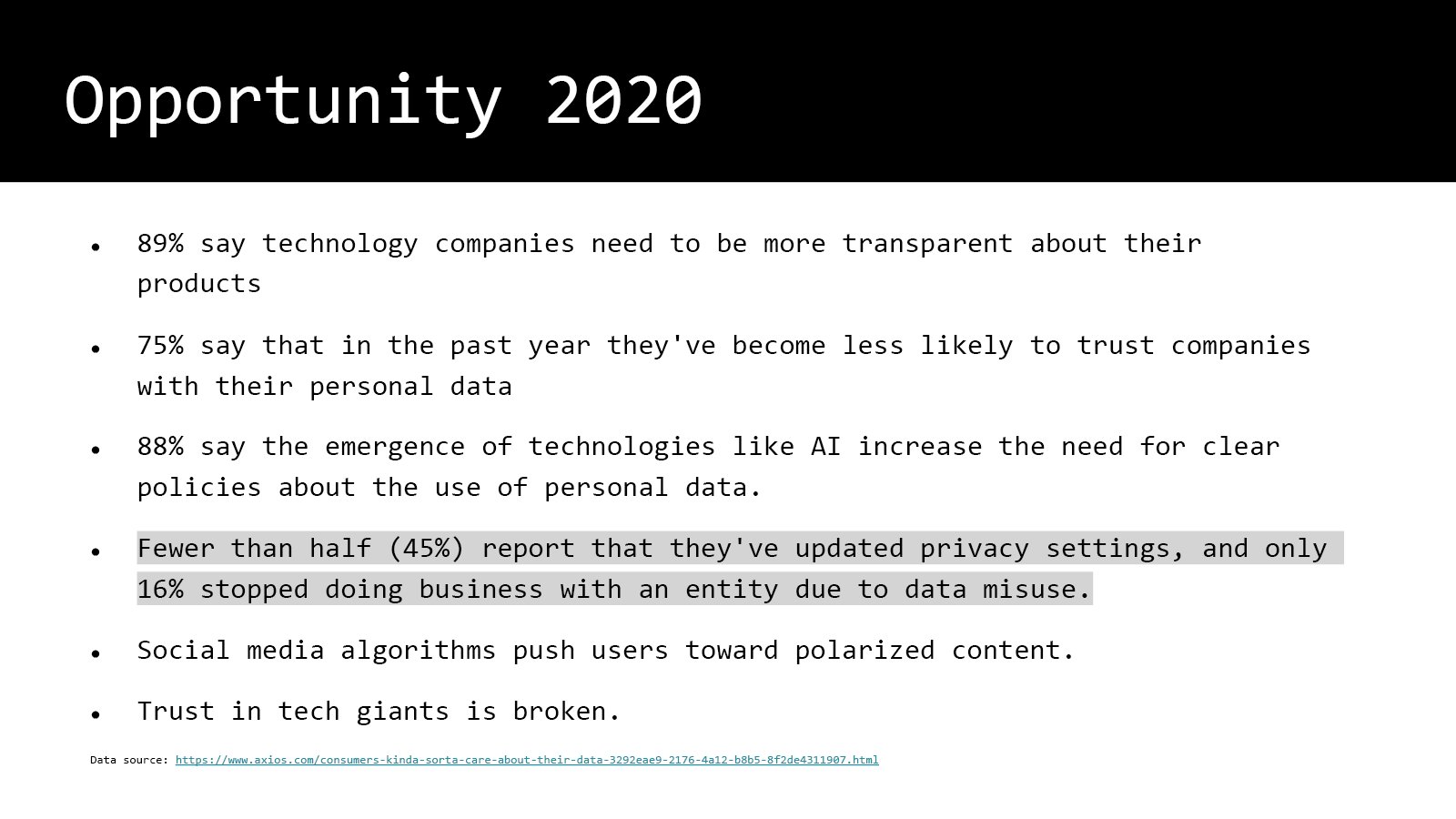 刚才我们说了,现在已经到了 89% 的人对今天的中心化的互联网和这些大的科技公司们有意见。